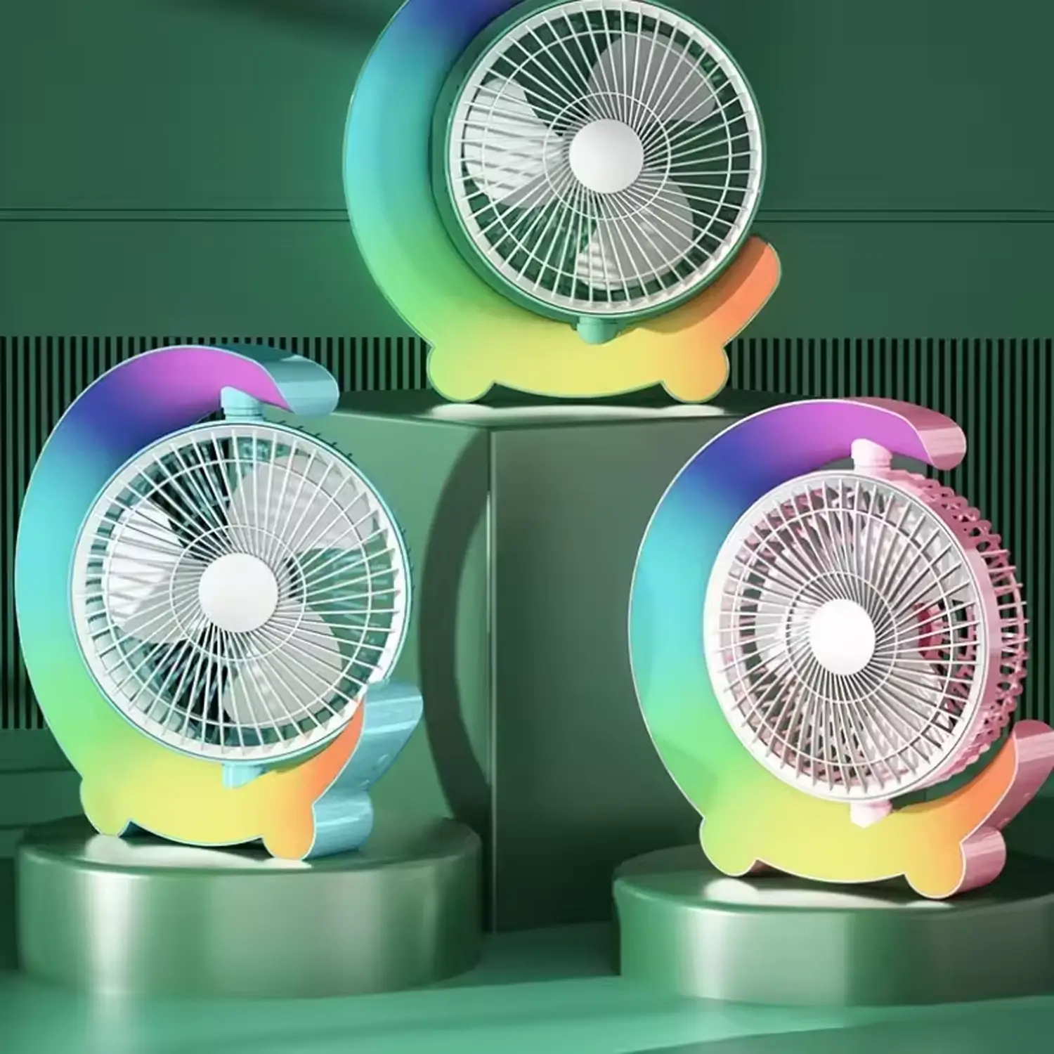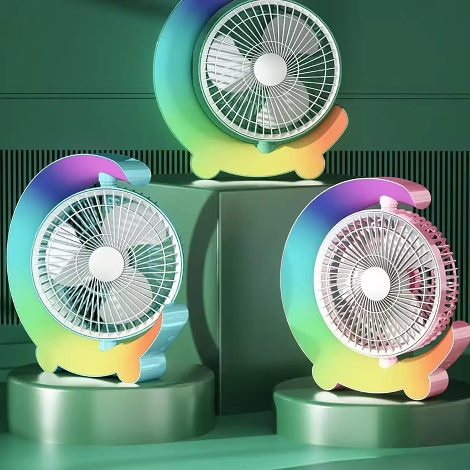 Colorful Circulating Desk Fan – USB Rechargeable with RGB Lighting