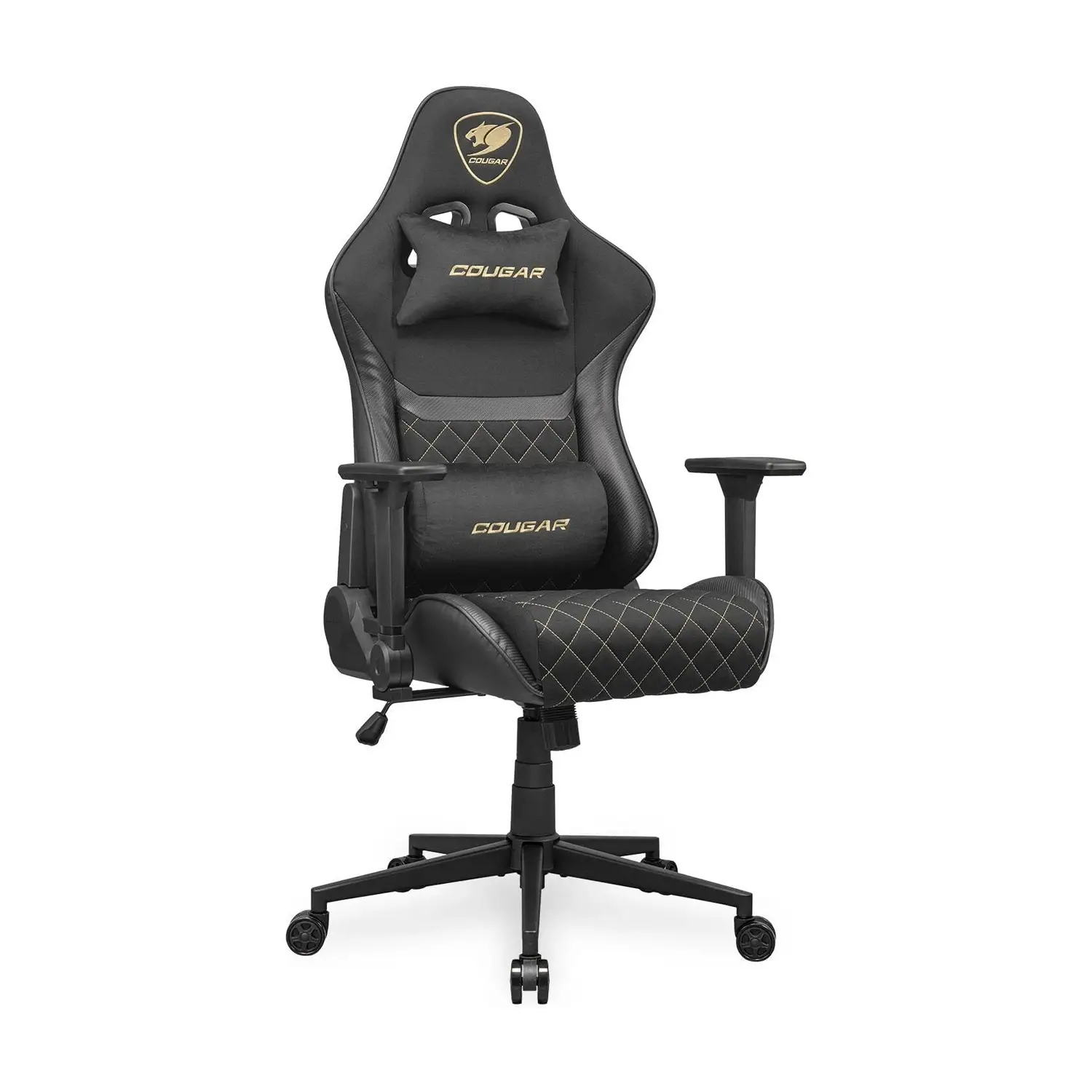 Just got this chair and it’s really comfortable. The black and gold look fits my setup perfectly, and the fabric surface keeps me cool during long gaming sessions. The 4D armrests and reclining back work great. Very happy with it.