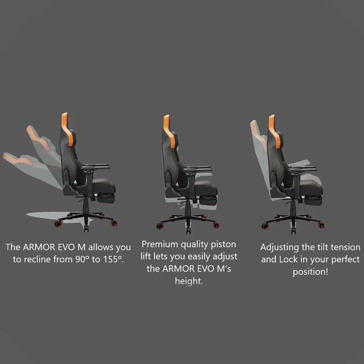 Upgrade your gaming setup with the Cougar Evo S Gaming Chair in bold Orange and Black. Designed for elite gamers, it combines superior ergonomics, premium materials, and striking style. With adjustable lumbar support, 3D armrests, and high-density foam cushioning, you get the perfect mix of comfort and performance for long gaming sessions.