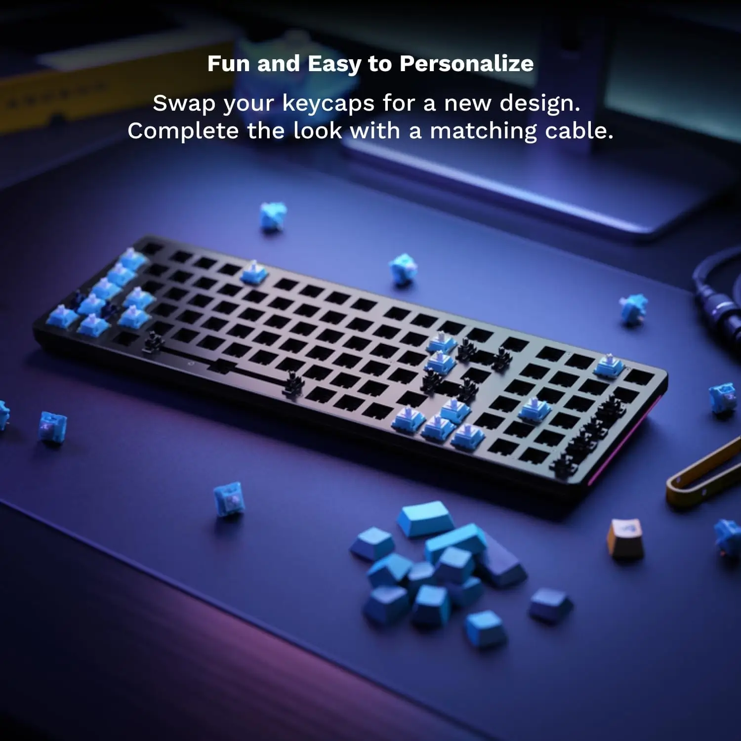 Equipped with high-quality mechanical switches (pre-installed for your convenience), the GMMK2 offers smooth and responsive keystrokes, delivering a satisfying typing and gaming experience. The black chassis is sturdy and stylish, complementing any setup.
