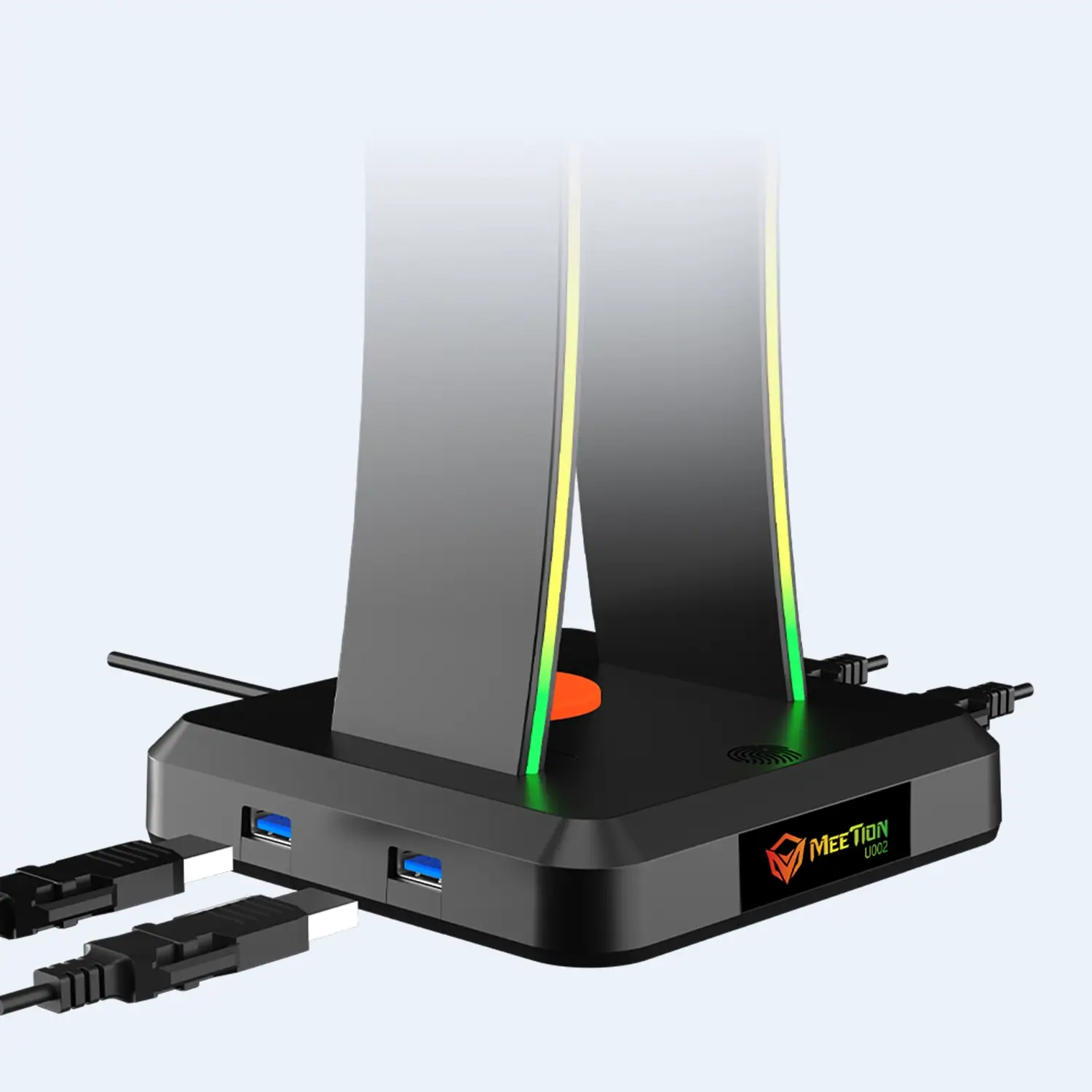 The Meetion U002 RGB stand really completes my gaming setup. It’s sturdy, the RGB lighting adds a cool vibe, and I love that my headset now has a proper place. Setup was simple and it looks better than frustrating on the desk. Definitely pleased with it.