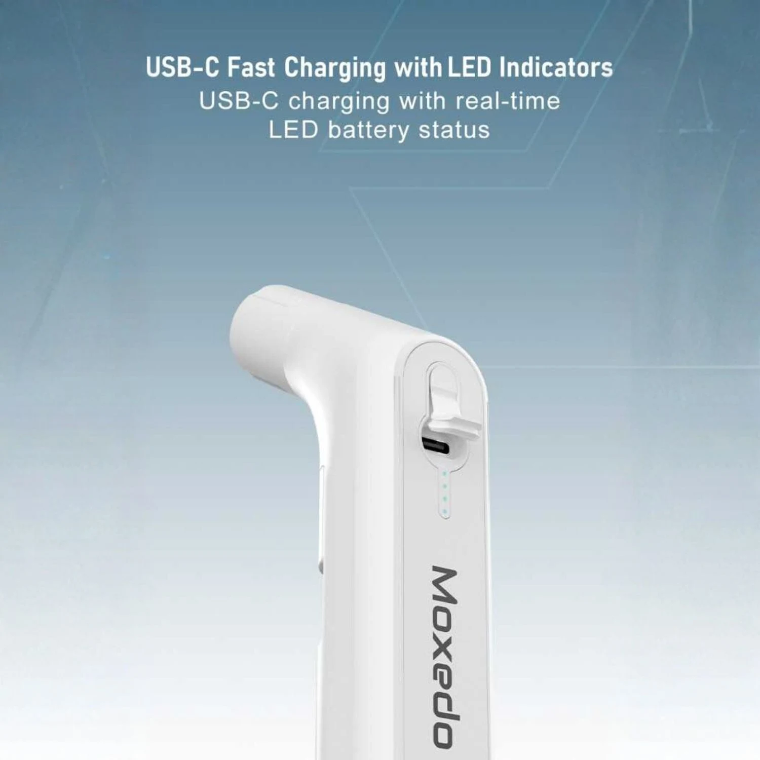 Provides up to 30 minutes of continuous operation on a single charge. Recharges fully in about 3 hours via USB-C.