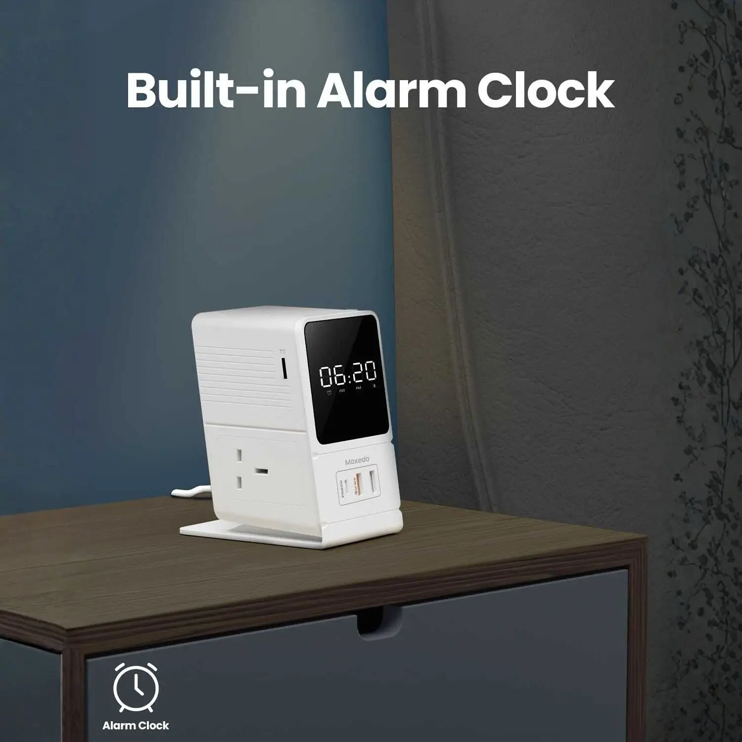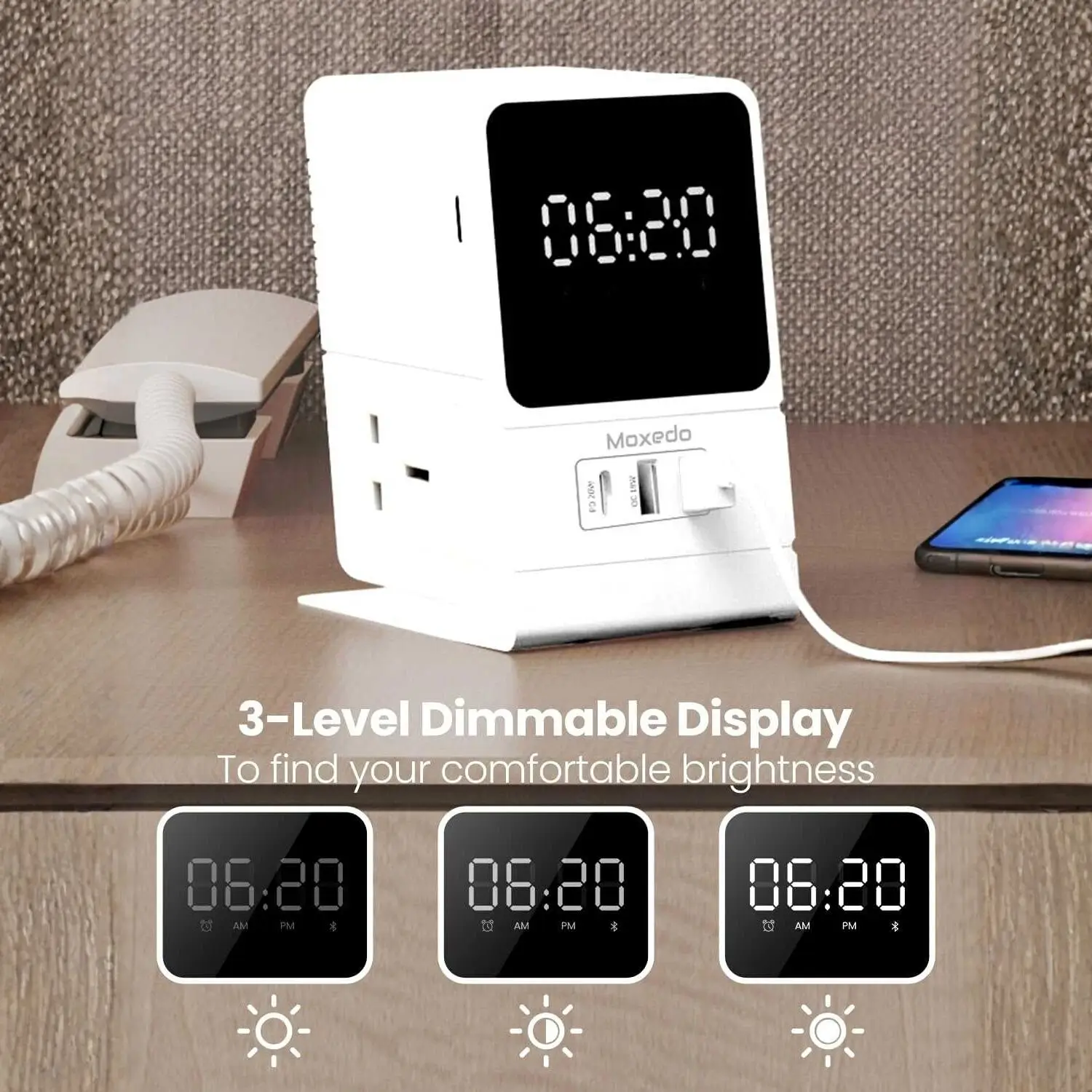 Moxedo Smart Charging Adapter with Clock Display & Bluetooth Speaker