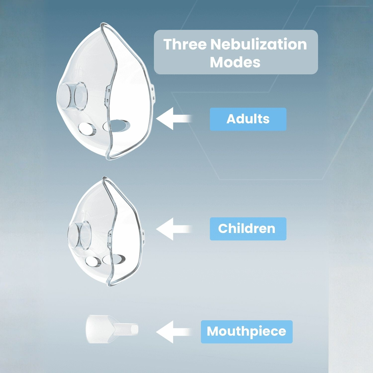 Choose from Soft, Medium, or Strong mist settings to match your comfort level and treatment needs. Ideal for dry air, congestion, cough, and various respiratory conditions.